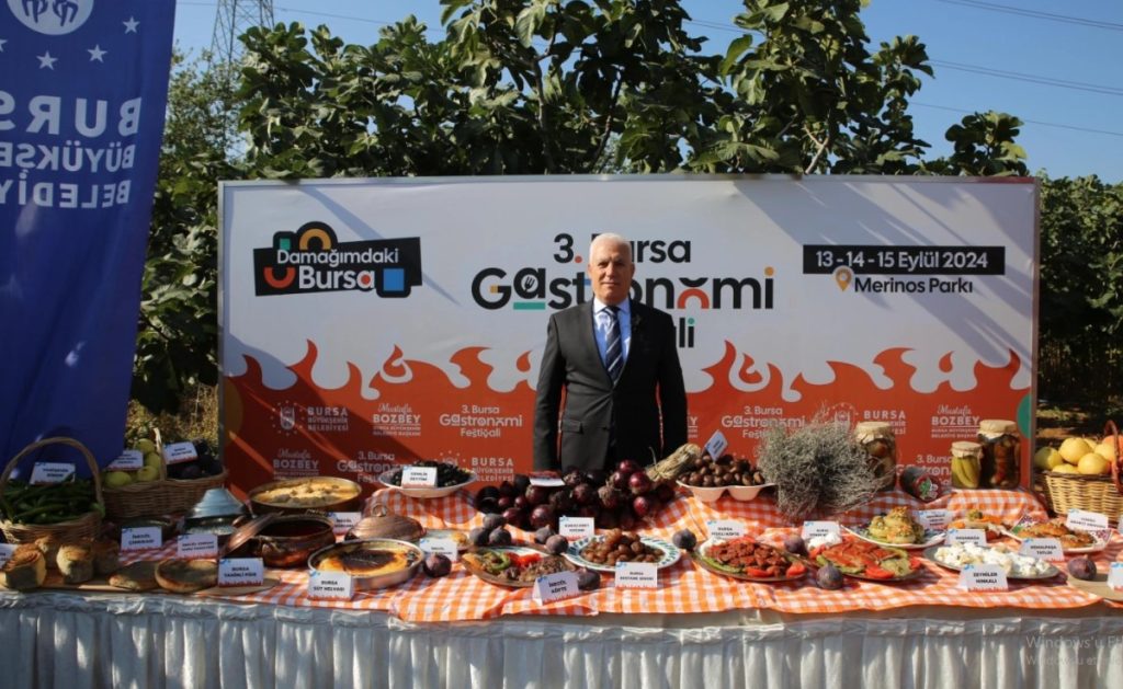 Bursa’nın sahip olduğu zengin mutfak kültürünü turizme kazandırmak ve dünyaya tanıtmak amacıyla düzenlenen ‘Gastronomi Festivali’nin üçüncüsü, 13-14-15 Eylül tarihlerinde Merinos Park’ta yapılacak. Geçmiş yıllardan farklı olarak Bursa’ya özgü ürünlerin, tatların ve Bursa’ya özgü ürünlerle üretilen yenilikçi lezzetlerin öne çıkacağı festivalde, gastronomiye dair yarışmalar, söyleşiler, atölyeler düzenlenecek. Renkli ve öğretici bir yolculuğun sunulacağı festivalde, misafirleri yöresel tatların ön planda olacağı stantlarda keyifli bir lezzet durağı bekliyor olacak.