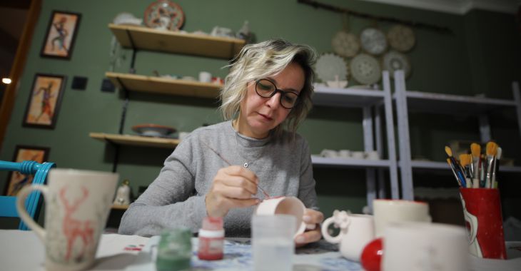 İş yeri açma hayaliyle Kent Akademisi’ndeki eğitimlere katıldığını söyleyen Özden Çobanoğlu, “Eğitimlerin sonunda artık bir seramik atölyem var. Hobimi bir meslek haline getirmiş oldum. Workshoplar yapıyorum, satış yapıyorum, çeşitli mecralarda atölyeler düzenliyorum. Artık hayalini kurduğum bir mesleğim ve iş yerim var. Ev hanımları da Bursa Büyükşehir Belediyesi sayesinde her alanda eğitim alabilir ve sonrasında bunu hayata geçirebilir. Desteklerinden dolayı Başkan Mustafa Bozbey’e teşekkür ediyorum” dedi.